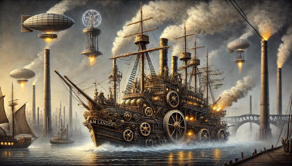 Ce matin en observant le ballet incessant des treuils et sous les soupirs des pistons du bateau à vapeur, le capitaine se laisse donc emporter dans ses souvenirs de guerre. Le capitaine fut promu pour sa bravoure et devint un des premiers militaires à faire carrière dans les bateaux a vapeur fort de leur expérience au service de la guerre maritime. Les trésors de guerre qu’il avait amoncelle tout le long de cette guerre civile meurtrière, mais lucrative pour qui savait compter et ne pas s’encombrer de préjudice ou de trop hautes valeurs morales lui ont permis de racheter un bateau et de financer sont aménagement faisant de lui un entrepreneur libre et informé.